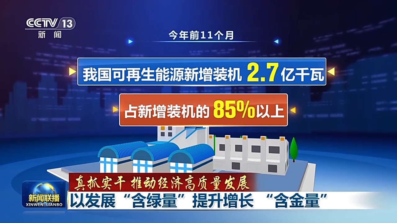 中國電力企業(yè)聯(lián)合會的最新數(shù)據(jù)顯示,今年前11個(gè)月,我國可再生能源新增裝機(jī)2.7億千瓦,占新增裝機(jī)的85%以上;到11月底,我國風(fēng)電和太陽能發(fā)電裝機(jī)占比首次超過四成,裝機(jī)規(guī)模已超過煤電,提前6年多完成我國在氣候雄心峰會上對世界的承諾。