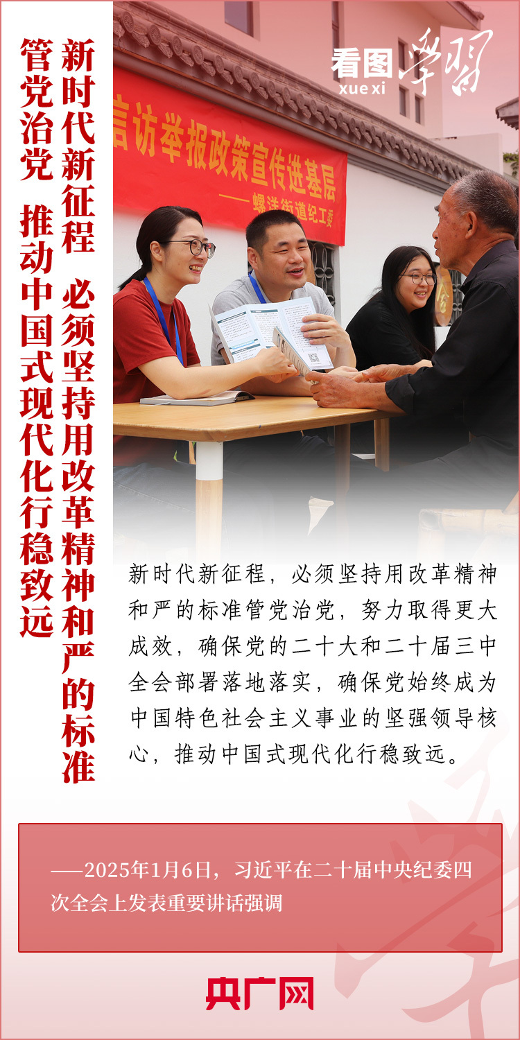 1月6日,習近平總書記在二十屆中央紀委四次全會上發(fā)表重要講話,充分肯定過去一年全面從嚴治黨取得的新進展、新成效,深刻分析當前反腐敗斗爭形勢,對堅決打好反腐敗斗爭攻堅戰(zhàn)、持久戰(zhàn)、總體戰(zhàn)提出明確要求??倳洀娬{(diào),新時代新征程,必須堅持用改革精神和嚴的標準管黨治黨,努力取得更大成效,確保黨的二十大和二十屆三中全會部署落地落實,確保黨始終成為中國特色社會主義事業(yè)的堅強領導核心,推動中國式現(xiàn)代化行穩(wěn)致遠。一起來學習!