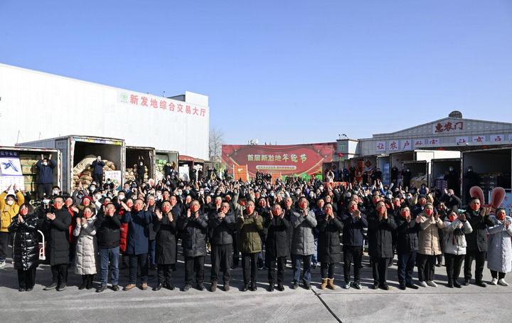2023年1月18日,北京新發(fā)地農(nóng)產(chǎn)品批發(fā)市場留守的商戶和采購年貨的群眾同習近平總書記視頻連線。