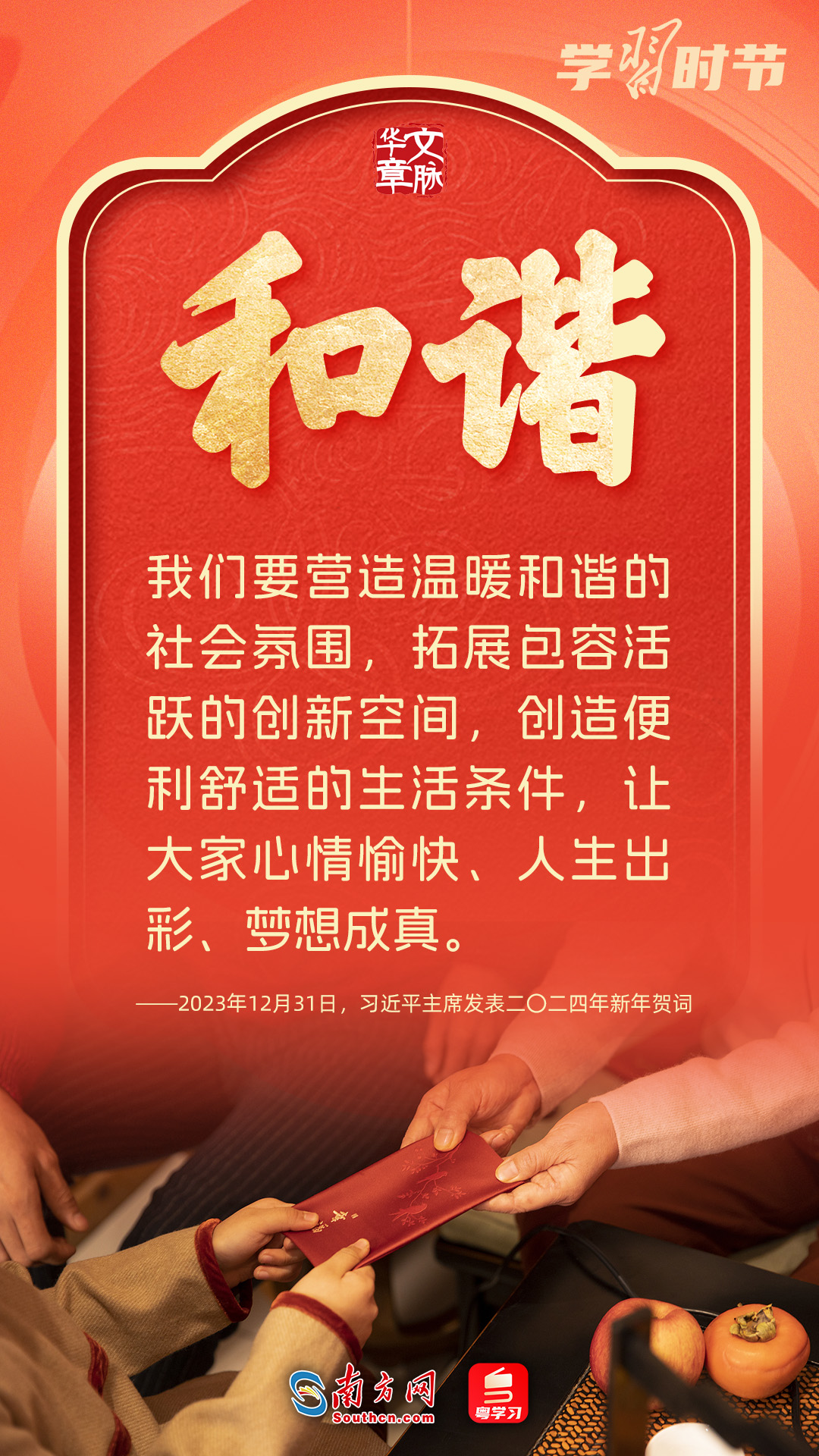 習(xí)近平總書記強(qiáng)調(diào),要把優(yōu)秀傳統(tǒng)文化的精神標(biāo)識(shí)提煉出來、展示出來,把優(yōu)秀傳統(tǒng)文化中具有當(dāng)代價(jià)值、世界意義的文化精髓提煉出來、展示出來。在這新春佳節(jié)里,讓我們重溫總書記的殷切寄語(yǔ),感悟春節(jié)中蘊(yùn)含的中華民族“精神密碼”。