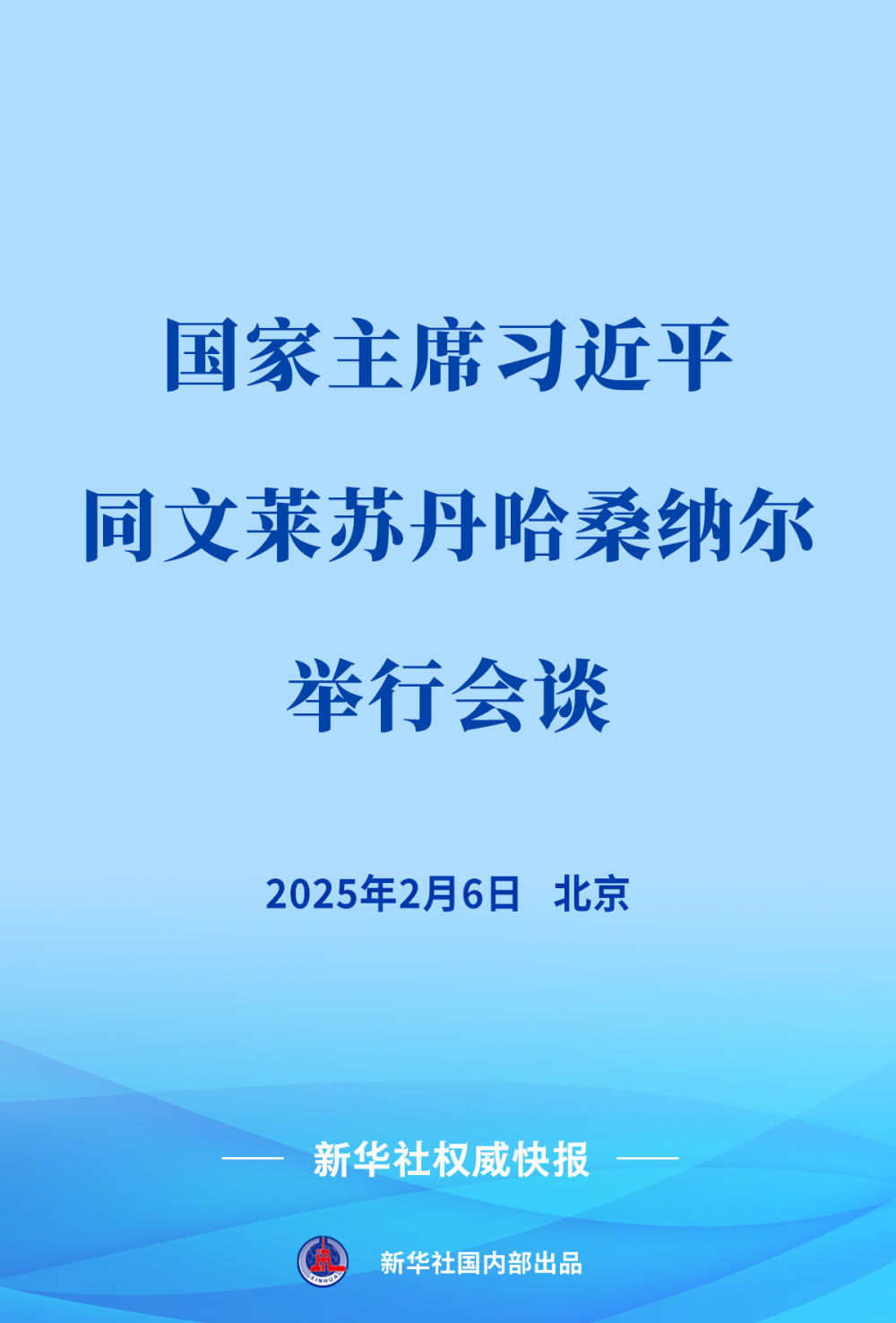 2月6日上午,國家主席習(xí)近平在北京人民大會(huì)堂同來華進(jìn)行國事訪問的文萊蘇丹哈桑納爾舉行會(huì)談。