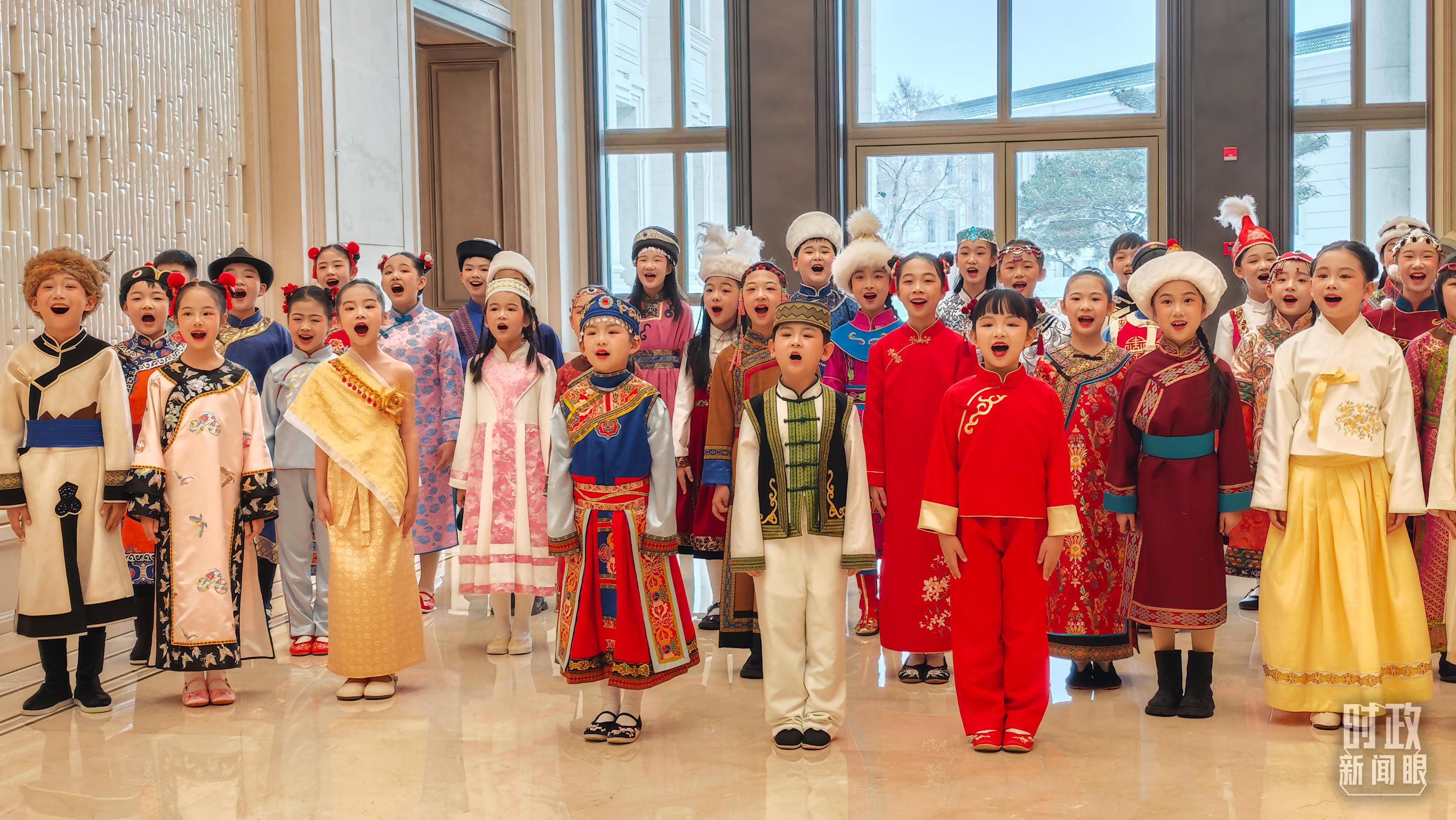 歡迎宴會現(xiàn)場,少年兒童正在合唱黑龍江民歌《烏蘇里船歌》。(總臺央視記者閆耀東拍攝)