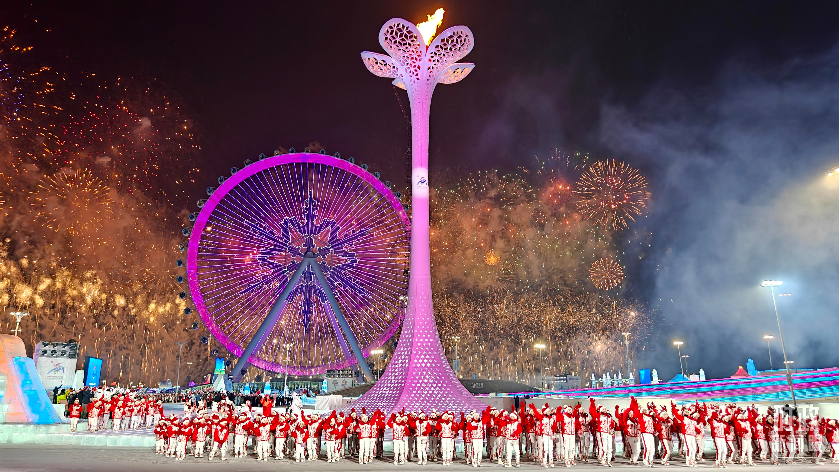 哈爾濱亞冬會主火炬點(diǎn)燃。(總臺記者任秋宇拍攝)