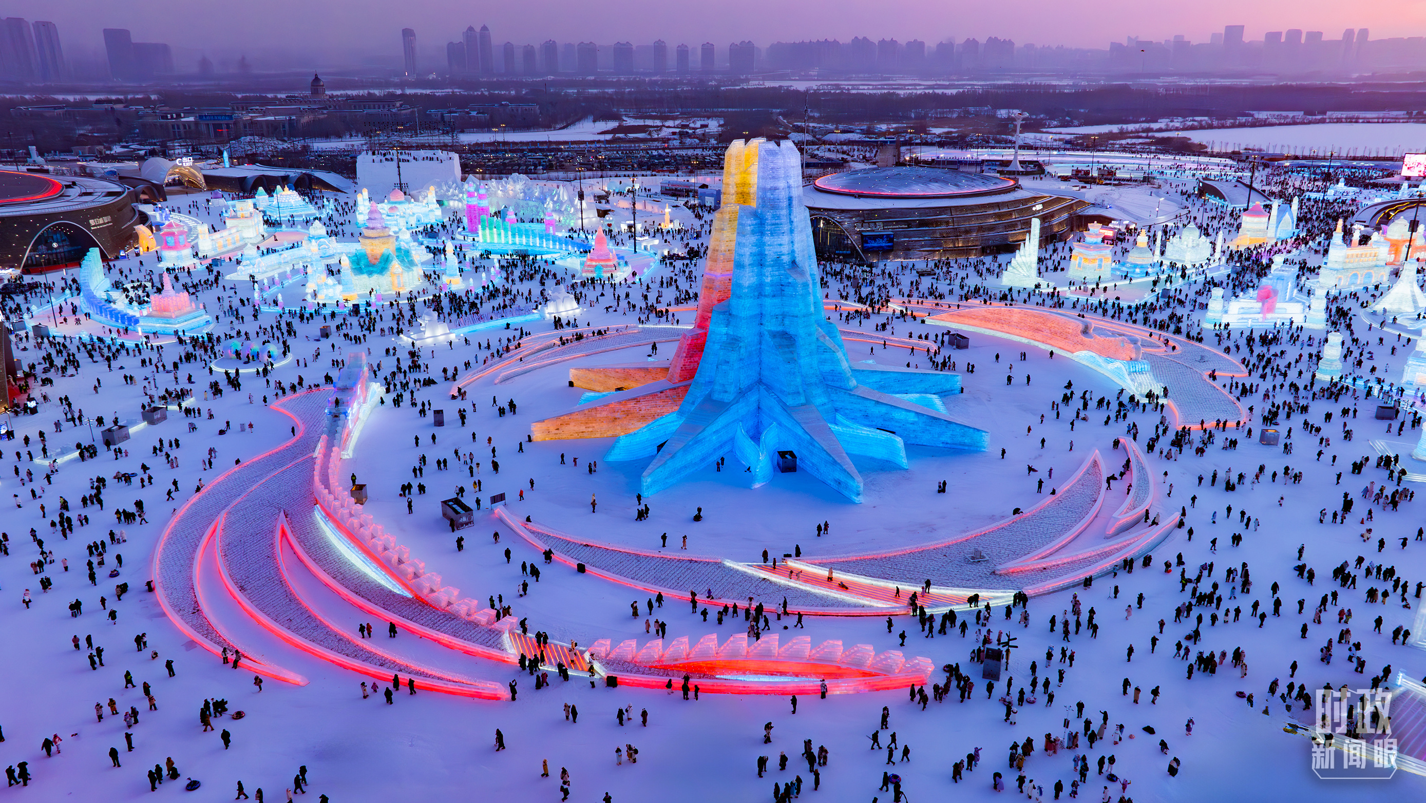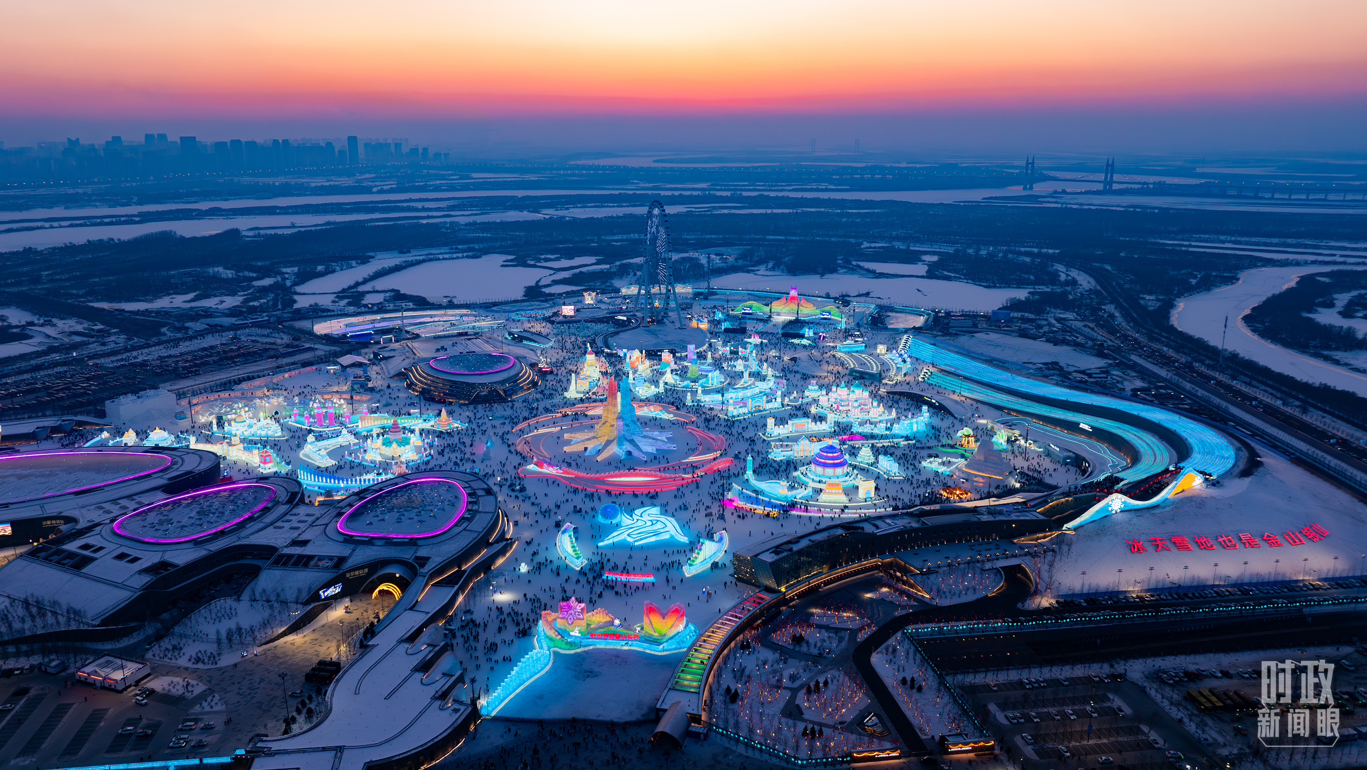 俯瞰哈爾濱冰雪大世界。(總臺記者邵沖拍攝)