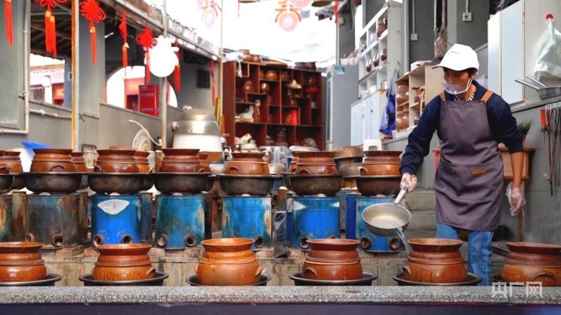 制作盬子雞的盬子,來自當地省級非物質文化遺產代表性傳承人母先才的陶藝館。2014年,在政府的幫扶下,母先才依托傳統(tǒng)技藝開設了陶藝館?,F(xiàn)在,他不僅把原來的土窯改成了更加環(huán)保的電窯,還把工坊變?yōu)榧铺?、研學、餐飲為一體的陶藝館,受到游客歡迎。