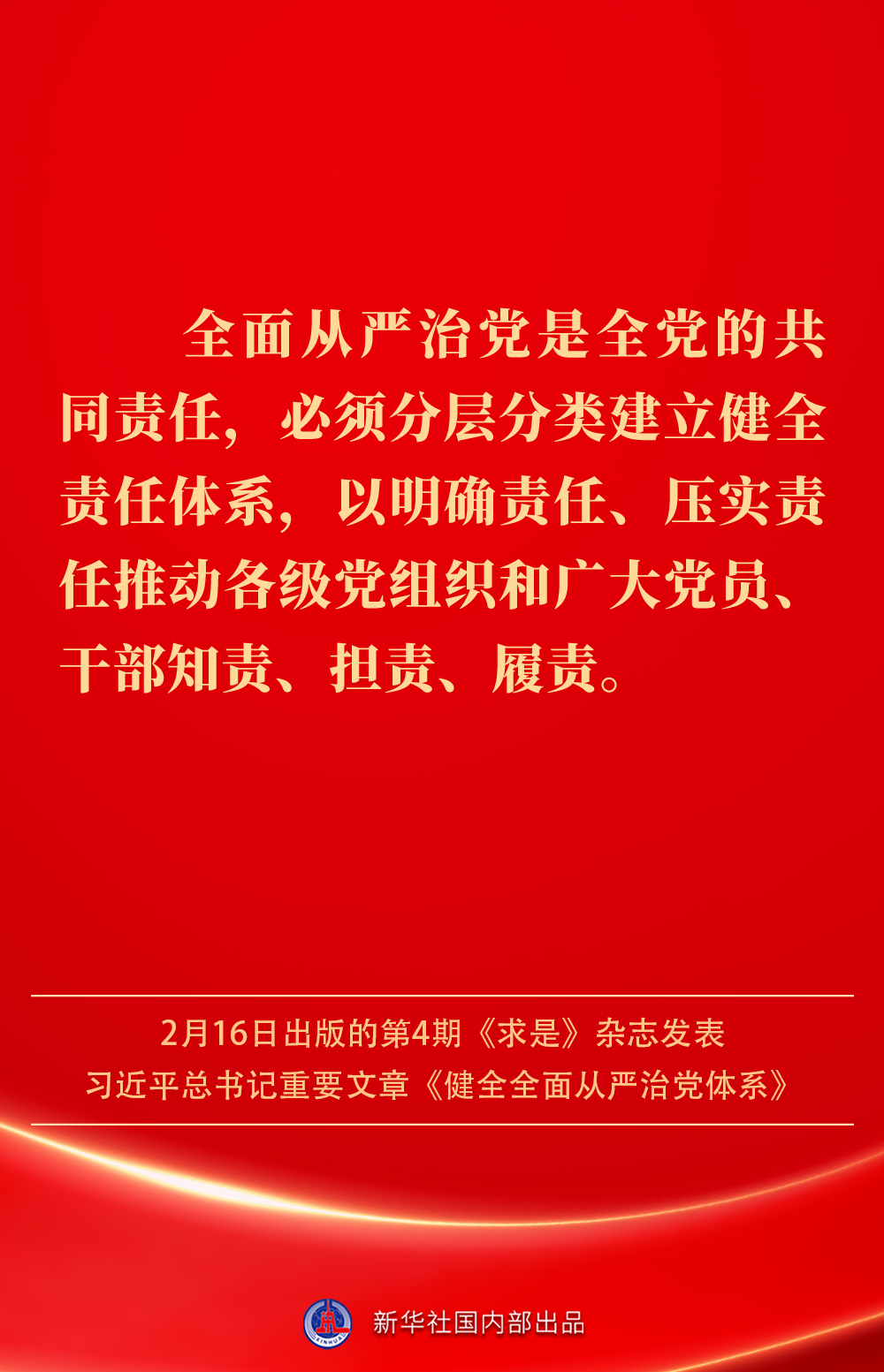 2月16日出版的第4期《求是》雜志發(fā)表習(xí)近平總書記重要文章《健全全面從嚴治黨體系》。如何進一步健全要素齊全、功能完備、科學(xué)規(guī)范、運行高效的全面從嚴治黨體系?習(xí)近平總書記闡明要旨——