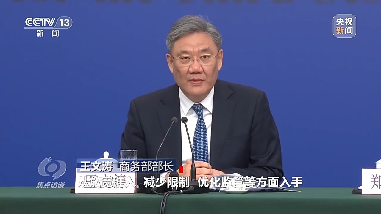 商務(wù)部部長 王文濤:將聚焦相關(guān)重點領(lǐng)域和民生關(guān)切,繼續(xù)出臺支持政策和專項舉措,從放寬準(zhǔn)入、減少限制、優(yōu)化監(jiān)管等方面入手,擴大健康、養(yǎng)老、托幼、家政等多元化服務(wù)供給。