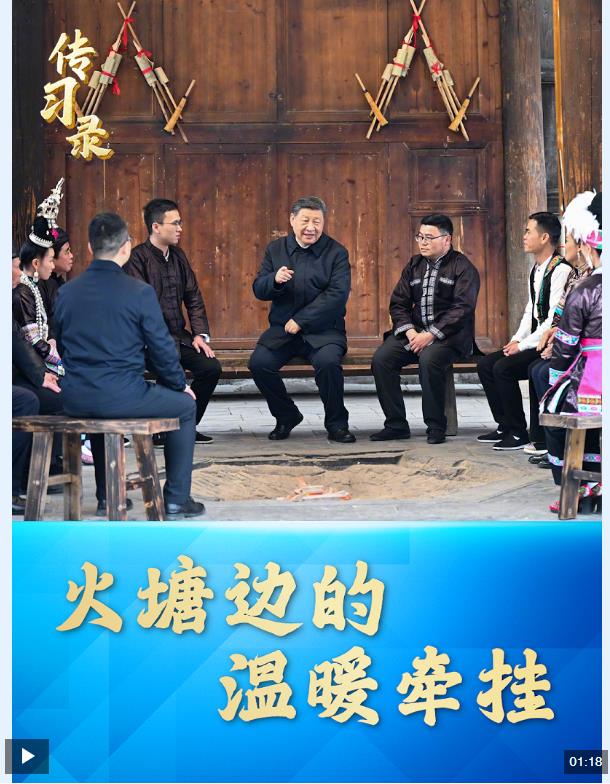 3月17日,習近平總書記來到貴州省黔東南州黎平縣肇興侗寨考察調(diào)研。信團鼓樓內(nèi),一方火塘邊,總書記同村干部和村民代表圍坐一起,共話鄉(xiāng)村全面振興。