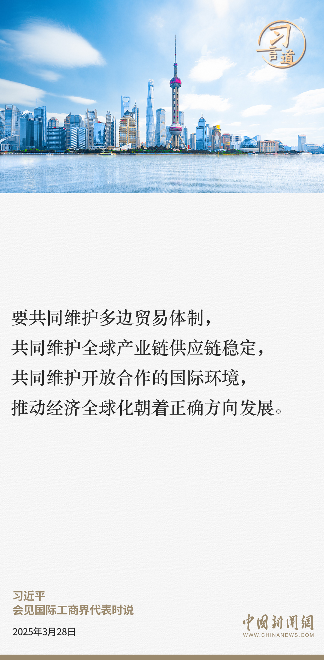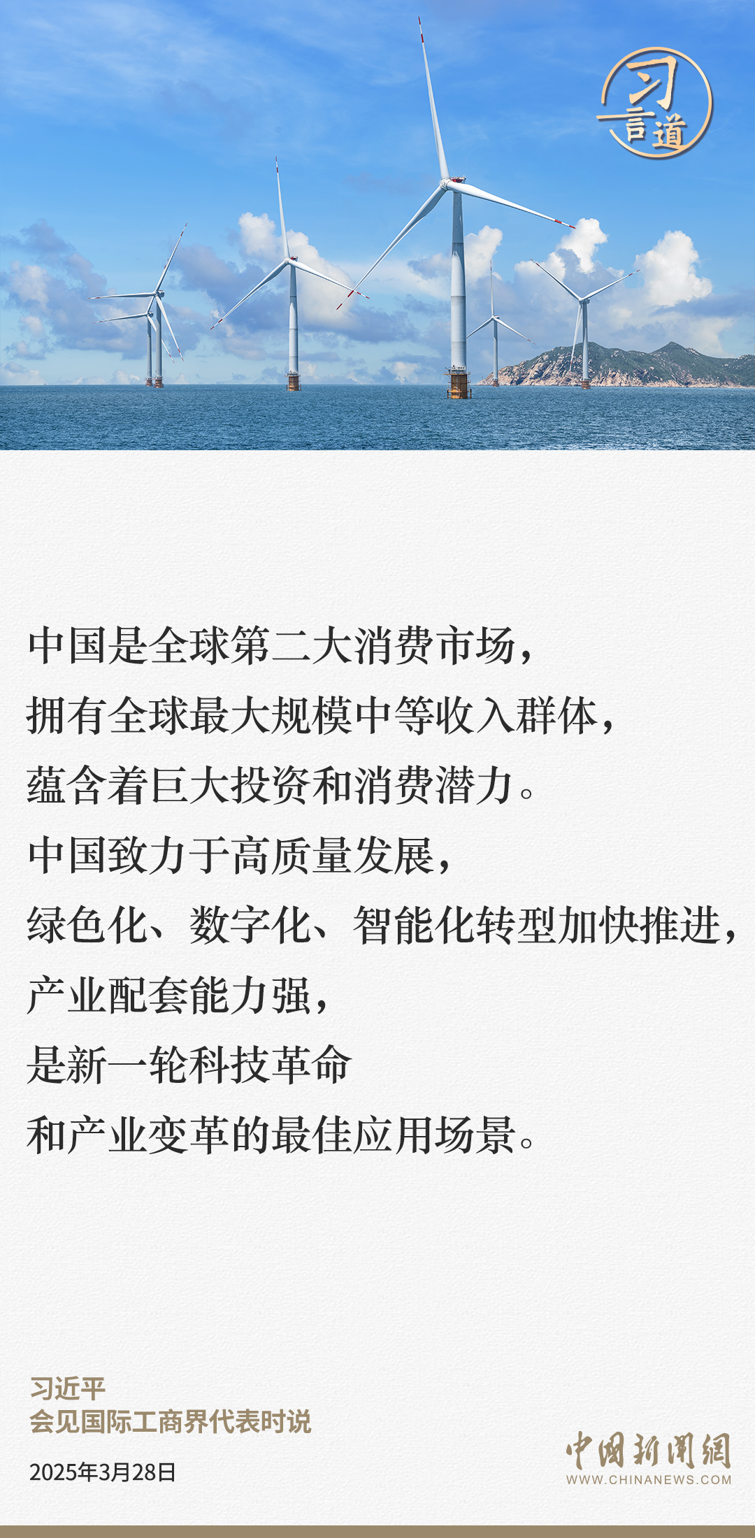 3月28日,國家主席習近平在北京人民大會堂會見國際工商界代表。習近平主席指出——