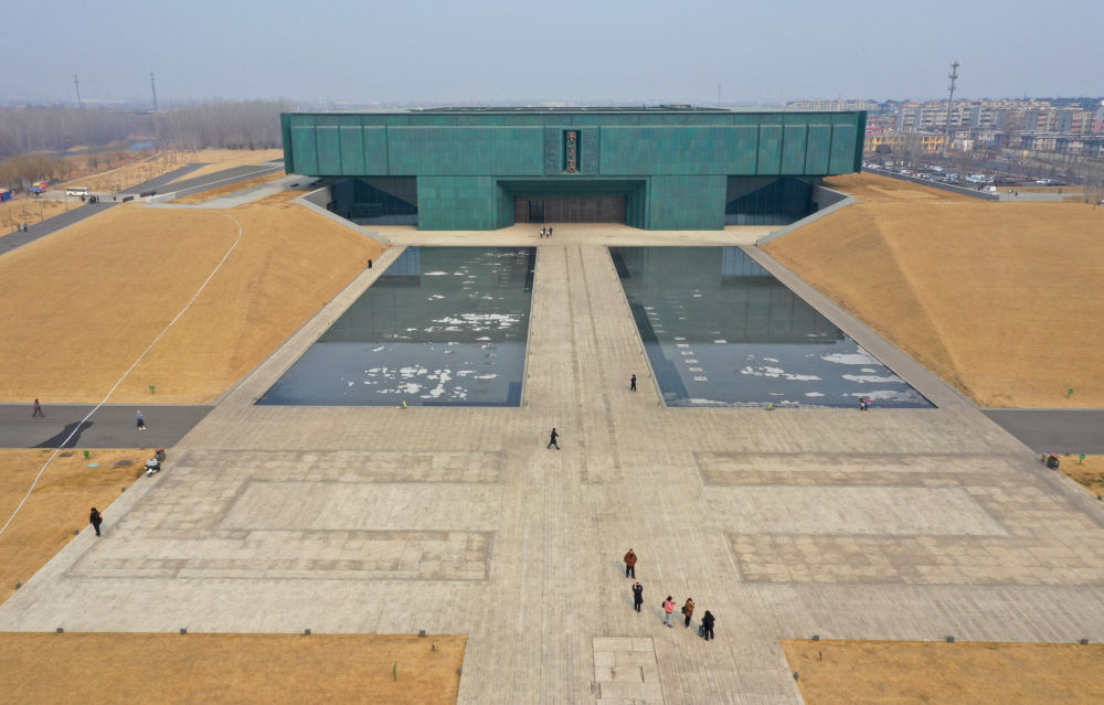 “商邑翼翼,四方之極。”位于太行山東麓的河南安陽小屯村一帶,是殷墟遺址所在地。三千多年前,繁盛的城市文明、舉世矚目的文字文明以及高度發(fā)展的手工業(yè)等,共同構(gòu)筑了早期中國(guó)的華彩篇章。2024年2月,殷墟博物館新館正式開館,成為首個(gè)全景式展現(xiàn)商文明的國(guó)家重大考古專題博物館(2025年2月21日攝,無人機(jī)照片)。