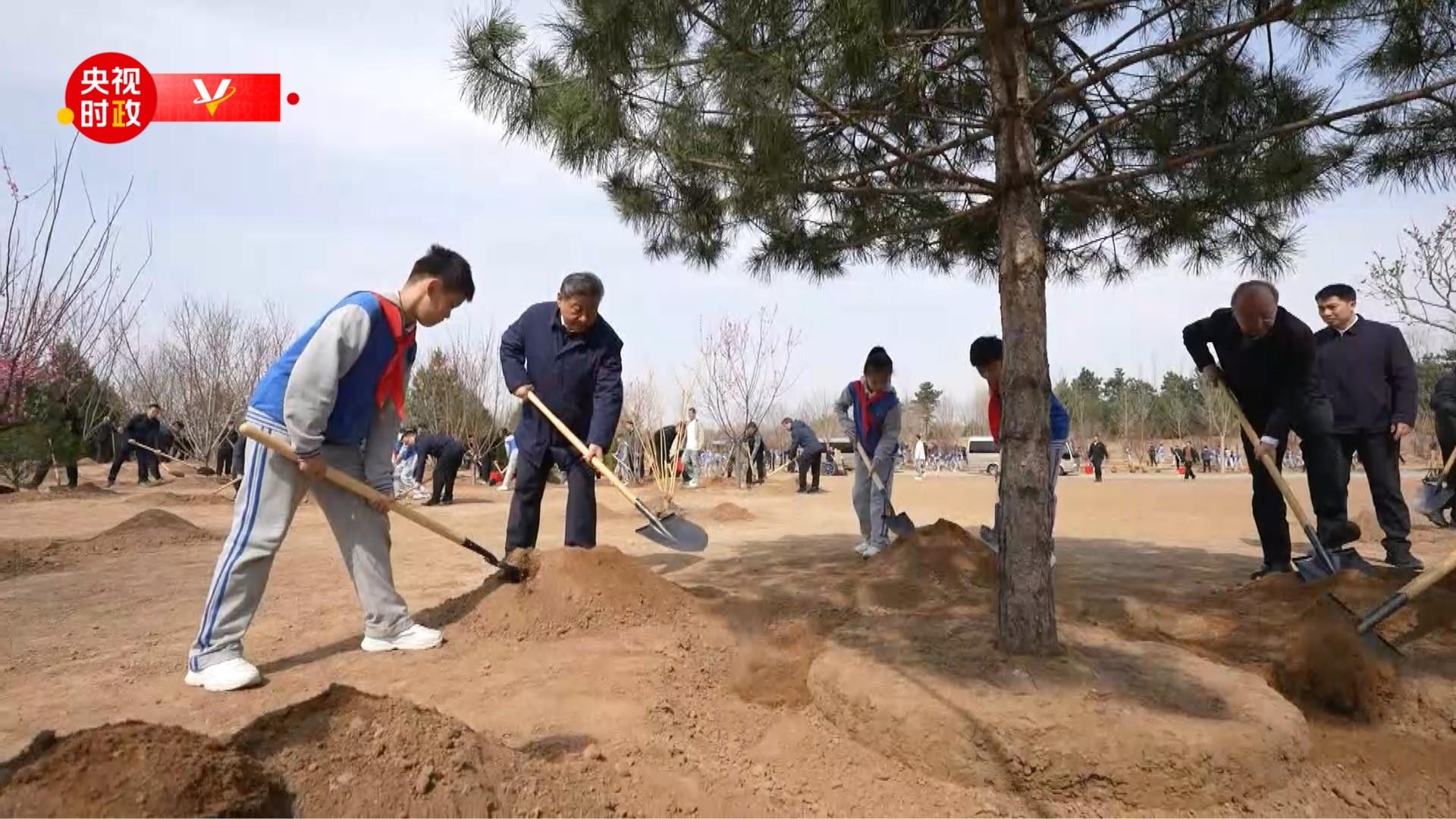 鏟土造坑、培土圍堰、提水澆灌……習(xí)近平接連種下油松、金枝槐、美人梅、車梁木、杜仲、元寶楓等多棵樹苗。