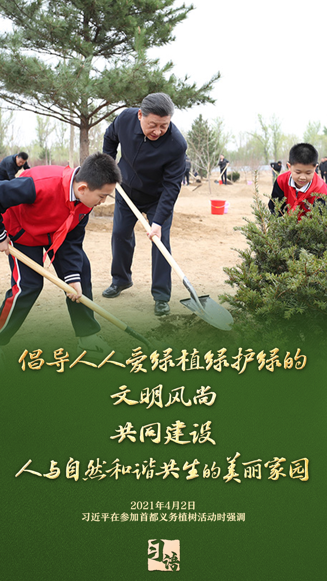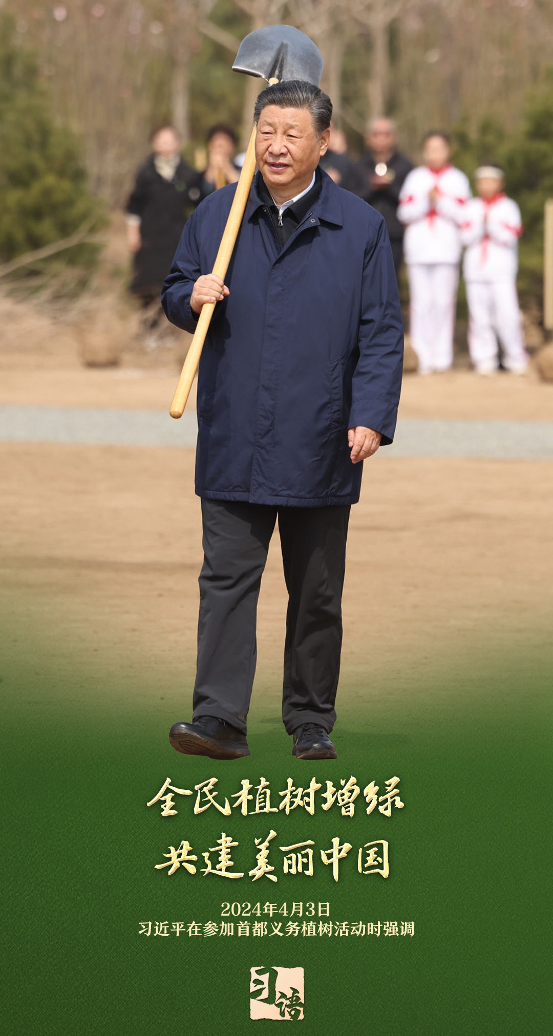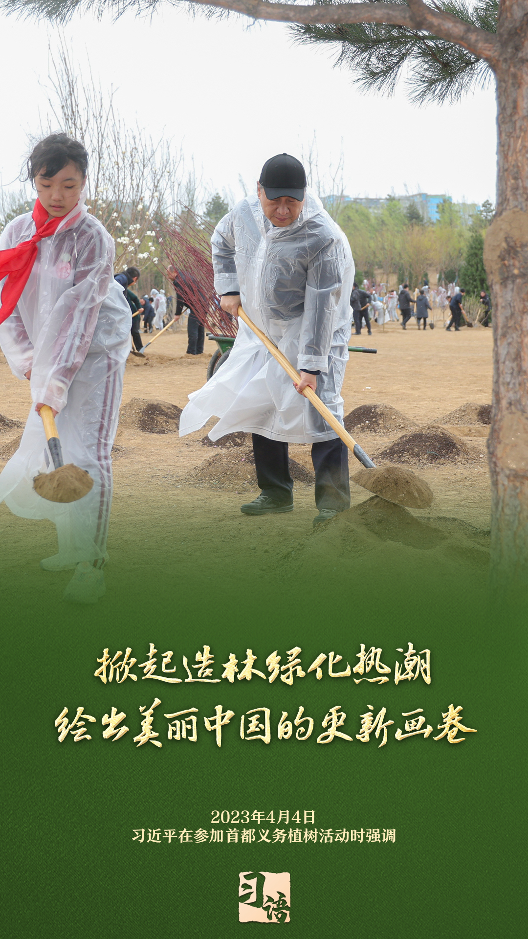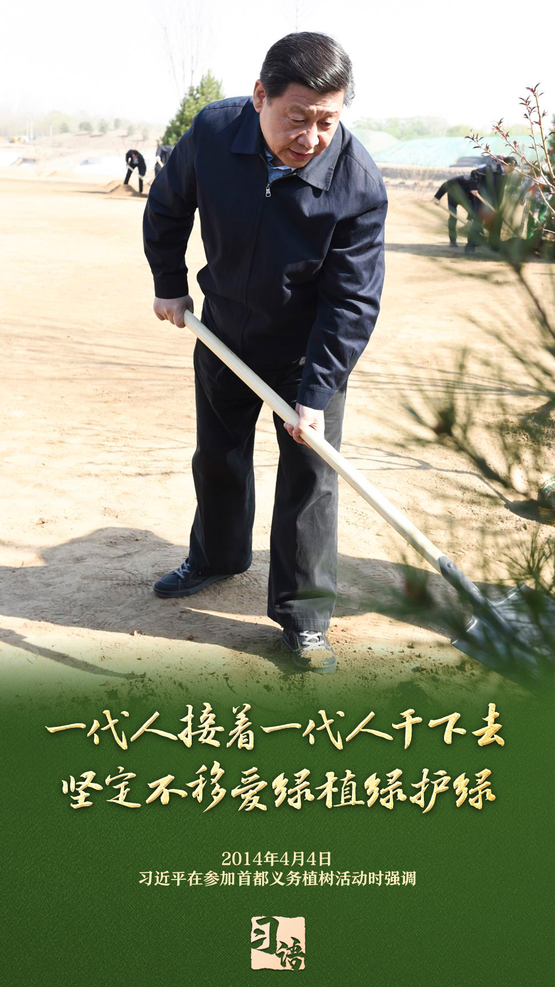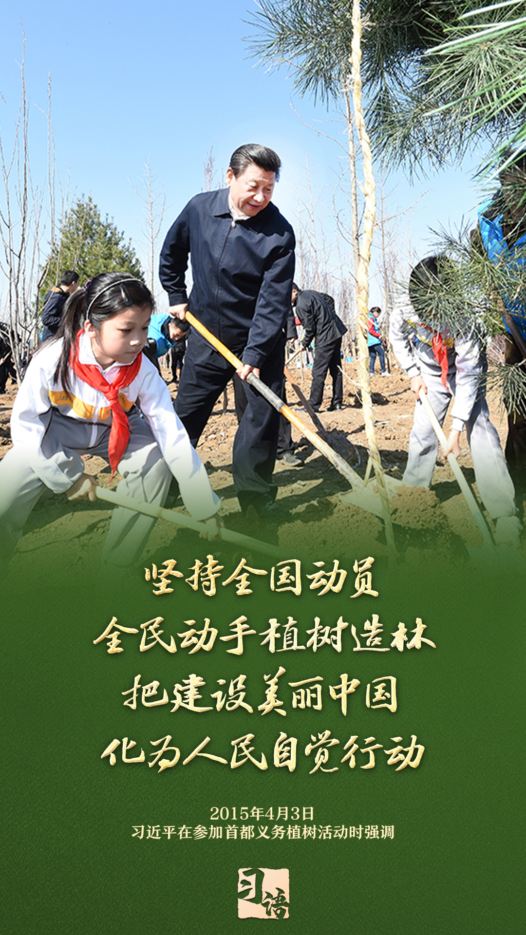 “植樹造林是一件很有意義的事情,是一項功在當(dāng)代、利在千秋的崇高事業(yè),要一以貫之、持續(xù)做下去?!弊?013年以來的13個春天里,無論晴雨,習(xí)近平總書記都會拿起鐵鍬,與干部群眾一起參加首都義務(wù)植樹活動。鏟土造坑、培土圍堰、提水澆灌,總書記身體力行種下綠色的希望,對擴(kuò)綠興綠護(hù)綠、建設(shè)美麗中國提出明確要求。一起學(xué)習(xí)。