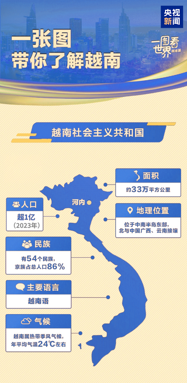 這里與華夏大地山水相依,兩國人民“共飲一江水,早相見、晚相望”。75載悠悠歲月里,中越情誼早已超越地理上的毗鄰,成為常來常往的好鄰居、好朋友、好同志、好伙伴。讓我們跟隨習(xí)主席的步伐,去這個(gè)親如手足的鄰居家串個(gè)門。