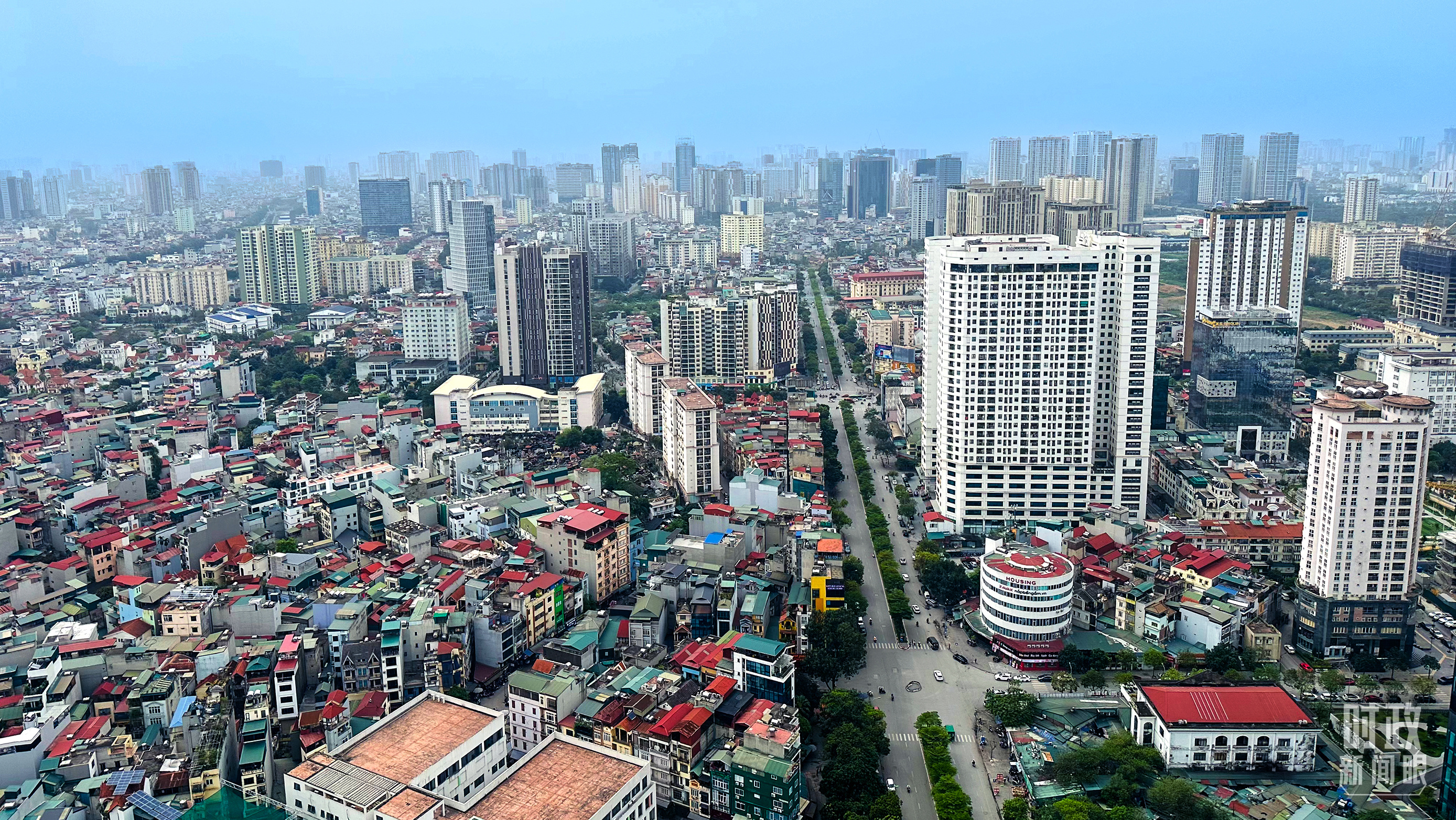 河內街頭懸掛的中越兩黨兩國旗幟。(總臺央視記者盧心雨拍攝)