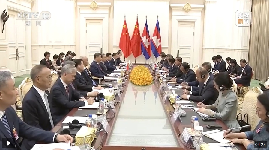 習(xí)近平指出,中柬兩國是友好鄰邦,更是鐵桿朋友。構(gòu)建中柬命運共同體是歷史的選擇、人民的選擇。當(dāng)前,中柬兩國都處在國家發(fā)展的關(guān)鍵階段,雙方要心系人民福祉,胸懷人類進(jìn)步,在推進(jìn)各自現(xiàn)代化進(jìn)程中,為構(gòu)建人類命運共同體樹立典范,攜手做世界百年變局中的和平力量、穩(wěn)定力量、進(jìn)步力量。