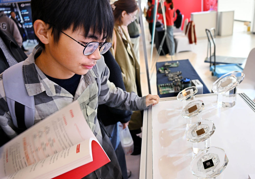2024年11月2日,與會者在2024中國自動化大會展覽區(qū)觀看國產(chǎn)芯片。當日,2024中國自動化大會在山東省青島市開幕。大會以“新質(zhì)發(fā)展 智控未來”為主題,聚焦自動化與人工智能深度融合,探討新產(chǎn)業(yè)、新技術的創(chuàng)新發(fā)展。