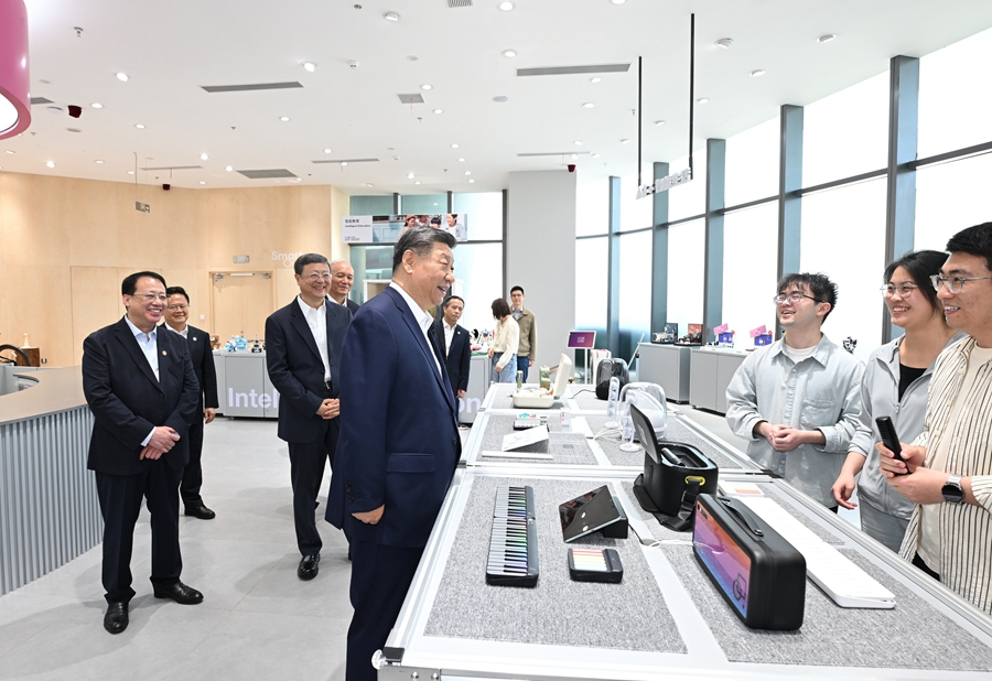 4月29日,中共中央總書(shū)記、國(guó)家主席、中央軍委主席習(xí)近平在上??疾?。這是習(xí)近平在位于徐匯區(qū)的上?!澳K倏臻g”大模型創(chuàng)新生態(tài)社區(qū)人工智能產(chǎn)品體驗(yàn)店考察。