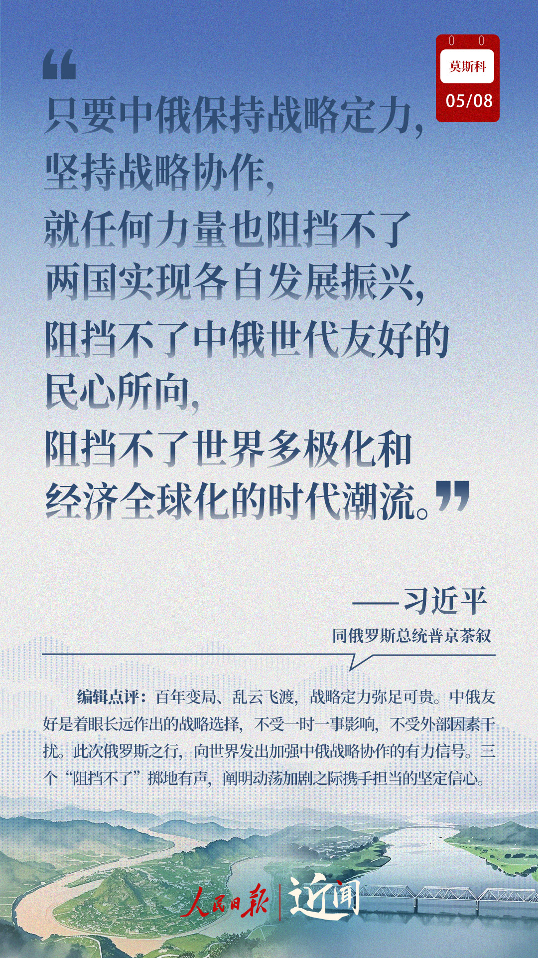 當?shù)貢r間5月8日,習近平主席出席普京總統(tǒng)舉行的歡迎儀式、小范圍會談、大范圍會談、簽字和合作文本交換儀式、共見記者、茶敘,兩國元首不同形式的長時間交流,引領中俄關系登高望遠。