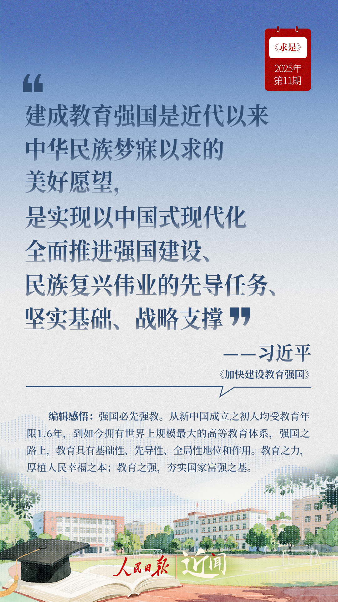 教育是國(guó)之大計(jì)、黨之大計(jì)。日前,《求是》雜志發(fā)表習(xí)近平總書記重要文章《加快建設(shè)教育強(qiáng)國(guó)》?!叭姘盐战逃恼螌傩?、人民屬性、戰(zhàn)略屬性”“讓教育改革發(fā)展成果更多更公平惠及全體人民”“讓教師享有崇高社會(huì)聲望、成為最受社會(huì)尊重的職業(yè)之一”……通過這些話,一起感悟習(xí)近平總書記對(duì)教育強(qiáng)國(guó)建設(shè)的謀劃與部署。