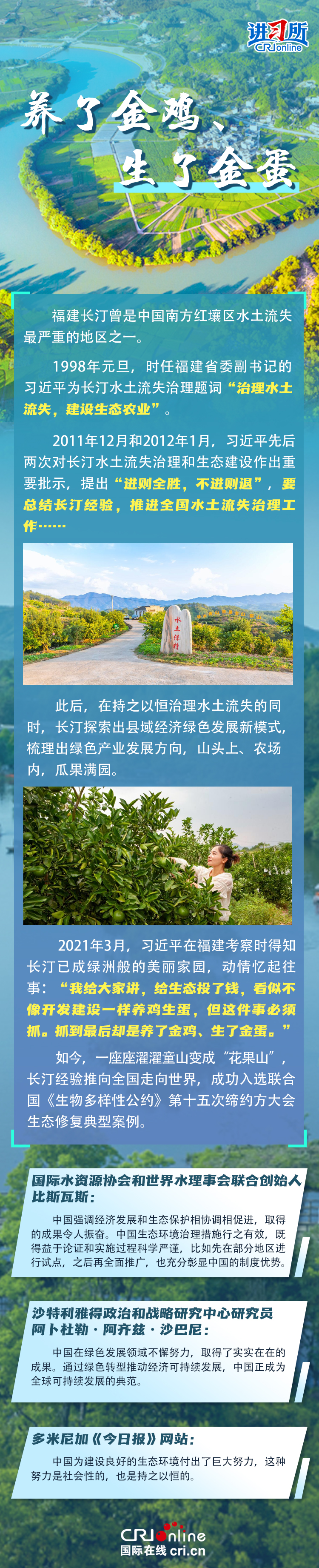 新時代以來,在習(xí)近平生態(tài)文明思想的科學(xué)指引下,“兩山”理念已深入人心,從“點綠成金”的紅樹林到一座座“花果山”,再到走向世界的長汀經(jīng)驗……美麗中國建設(shè)邁出重大步伐,生態(tài)環(huán)境保護發(fā)生歷史性變化。國際社會認為,中國取得廣泛的綠色發(fā)展成就,從根本上源于習(xí)近平生態(tài)文明思想,特別是“兩山”理念的指引。在通過綠色轉(zhuǎn)型推動經(jīng)濟可持續(xù)發(fā)展方面,中國正成為全球可持續(xù)發(fā)展的典范。