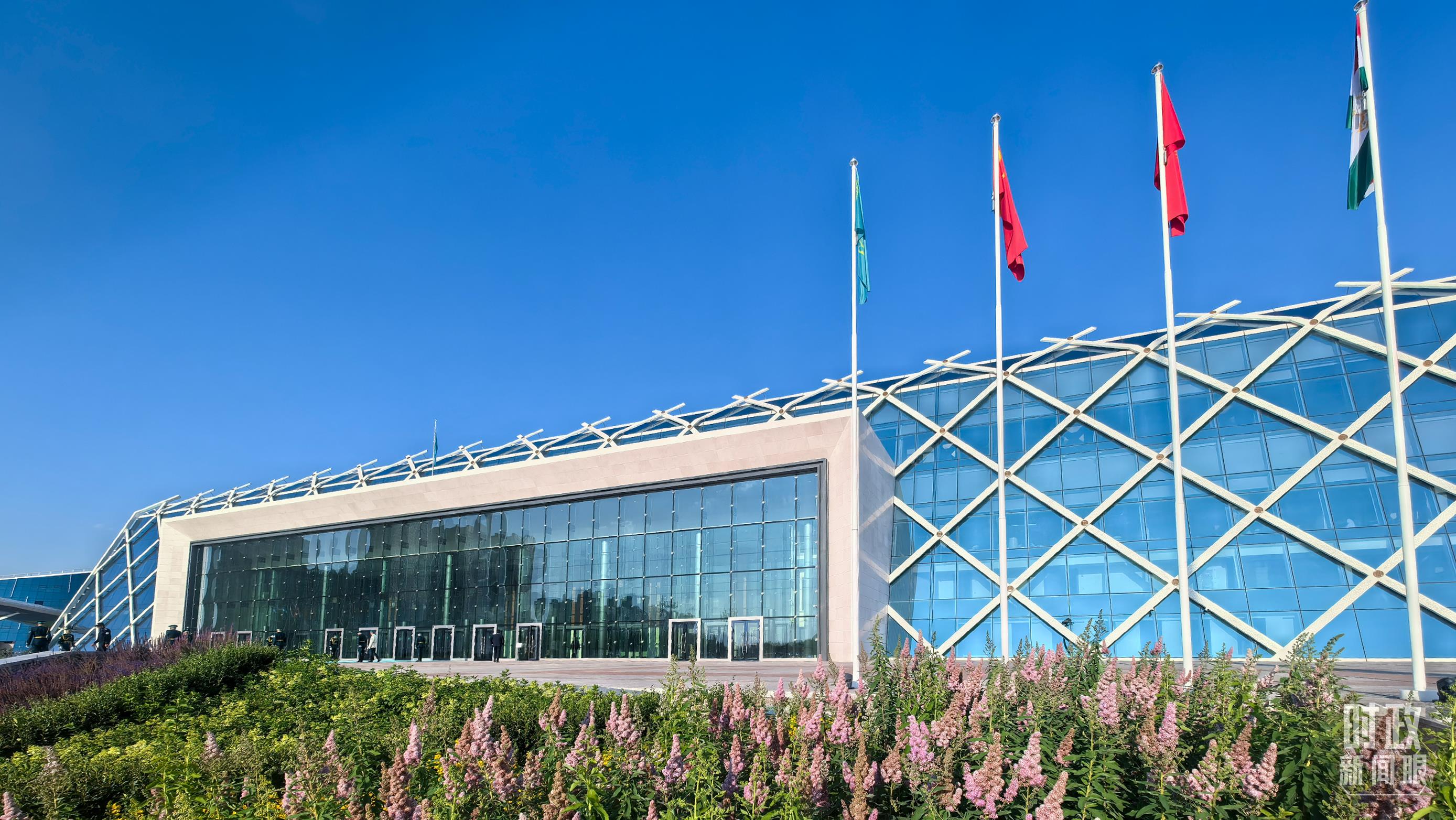 雙邊會見在這里舉行,這是中吉兩國國旗。(總臺央視記者劉琦拍攝)