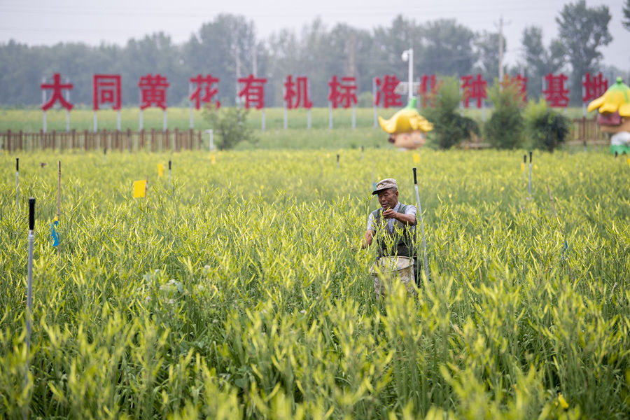 那次考察期間,習(xí)近平總書記來到大同市云州區(qū)有機(jī)黃花標(biāo)準(zhǔn)化種植基地。