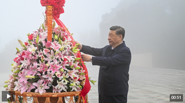 習(xí)近平在陽泉市向抗戰(zhàn)烈士敬獻(xiàn)花籃并參觀百團(tuán)大戰(zhàn)紀(jì)念館