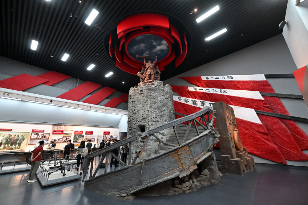 2025年7月7日上午,北京市第十二中學(xué)的少先隊(duì)員參觀紀(jì)念全民族抗戰(zhàn)爆發(fā)88周年儀式暨《為了民族解放與世界和平》主題展覽。新華社記者 陳曄華 攝