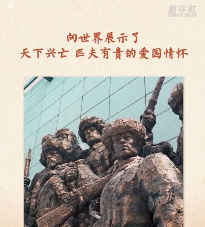 中國(guó)人民在抗日戰(zhàn)爭(zhēng)的壯闊進(jìn)程中孕育出偉大抗戰(zhàn)精神,向世界展示了天下興亡、匹夫有責(zé)的愛(ài)國(guó)情懷,視死如歸、寧死不屈的民族氣節(jié),不畏強(qiáng)暴、血戰(zhàn)到底的英雄氣概,百折不撓、堅(jiān)忍不拔的必勝信念。