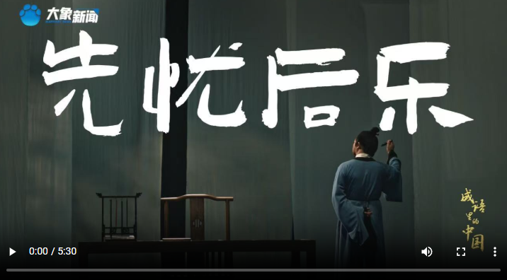 《文脈華章|成語里的中國:先憂后樂》詳細解讀“先天下之憂而憂,后天下之樂而樂”的淵源、內(nèi)涵、時代意義,我們一起感悟總書記反復(fù)強調(diào)這句話的深意。
