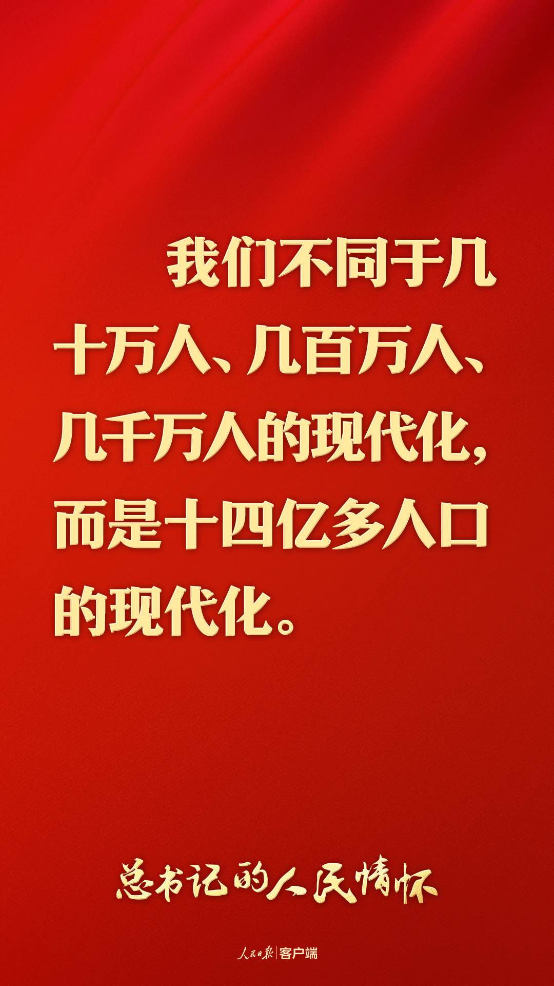 現(xiàn)代化的本質(zhì)是人的現(xiàn)代化。我們不同于幾十萬(wàn)人、幾百萬(wàn)人、幾千萬(wàn)人的現(xiàn)代化,而是14億多人口的現(xiàn)代化。