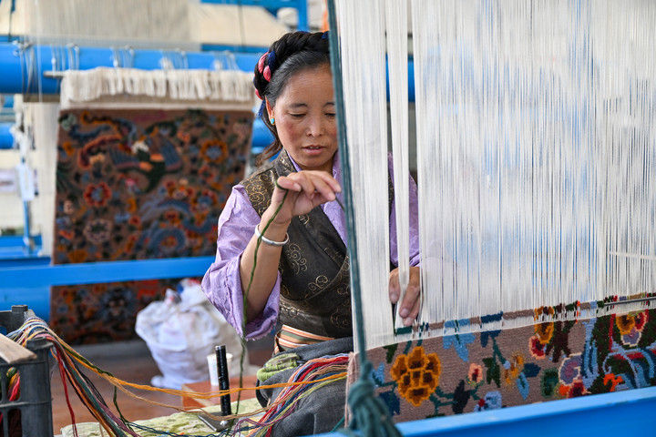 2025年7月18日,江孜藏毯文化發(fā)展有限責(zé)任公司的員工在生產(chǎn)車間內(nèi)編織藏毯。西藏日喀則市江孜縣是著名的藏毯(藏族稱為“卡墊”)之鄉(xiāng),織毯歷史悠久。藏族卡墊織造技藝于2006年被列入國家級非物質(zhì)文化遺產(chǎn)代表性項(xiàng)目名錄。近年來,江孜藏毯在守護(hù)傳統(tǒng)技藝的同時積極創(chuàng)新,通過建立合作社、開辦技能培訓(xùn)班等方式擴(kuò)大靈活就業(yè)規(guī)模,讓更多人在家門口織藏毯增收。