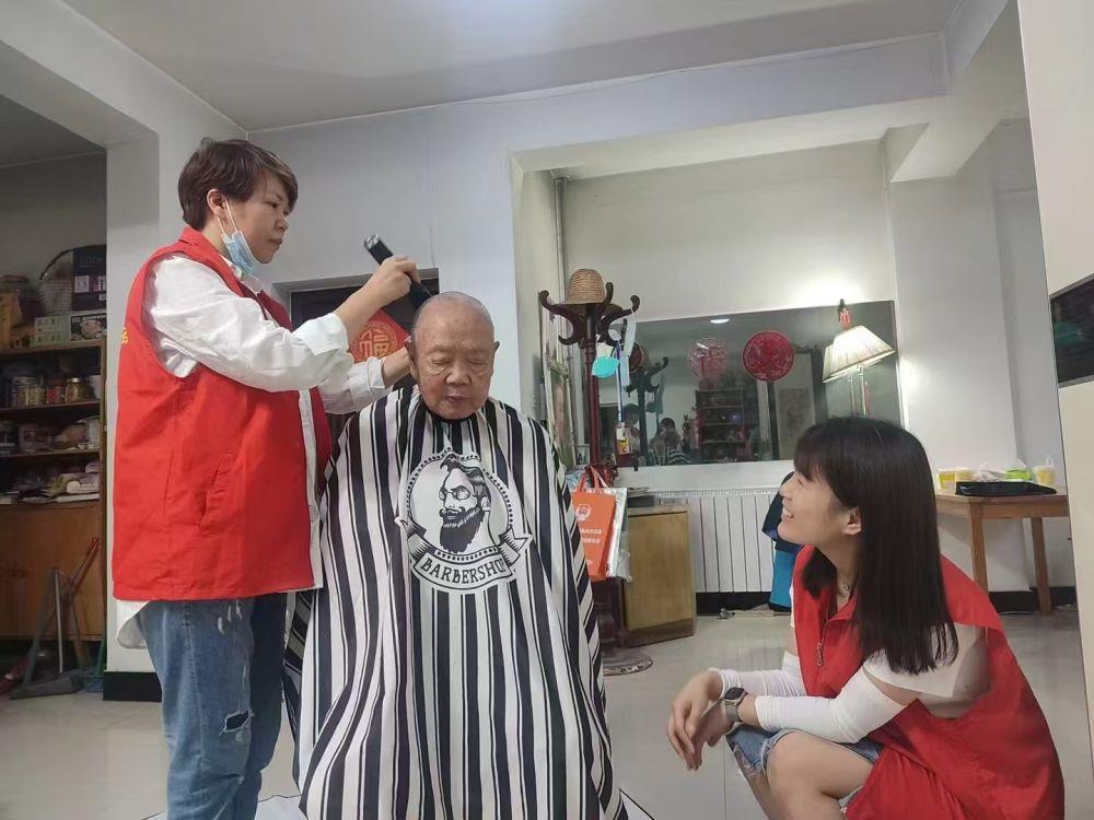 陜西西安碑林區(qū)黃雁社區(qū)的工作人員和志愿者上門為留守老人提供剪發(fā)服務(wù)。