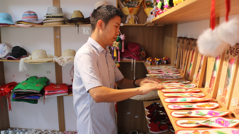 從外地返鄉(xiāng)的“90后”扶銀廷和妻子,在田鋪大塆創(chuàng)辦了一家“文創(chuàng)工坊”?!跋裥瑝|、虎頭枕、虎頭帽這些手工制品,都是我們當(dāng)?shù)匾恍├先恕⒋蠼闶止ぷ龅?。這些特色的文創(chuàng)產(chǎn)品既能讓游客了解當(dāng)?shù)乇就廖幕衷黾恿舜迕袷杖??!狈鲢y廷說。