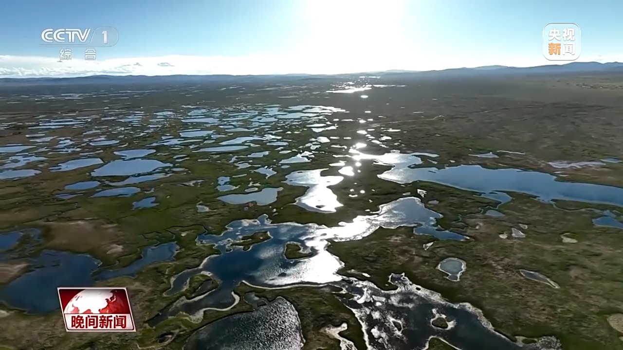 從高空俯瞰,無數(shù)湖泊沼澤,在陽光的照耀下,星星點(diǎn)點(diǎn)、光彩奪目,如同綻放的花朵,點(diǎn)綴在高原之上。
