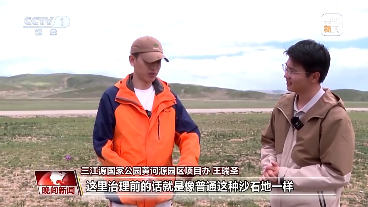 三江源國家公園黃河源園區(qū)項(xiàng)目干事 王瑞圣:這里治理前就像普通沙石地一樣,治理完的成效就是這樣子的,我們的草籽就在當(dāng)時(shí)切割的凹槽里面生長,這些草籽好多根部已經(jīng)進(jìn)行分裂了,所以會(huì)顯得非常茂密。