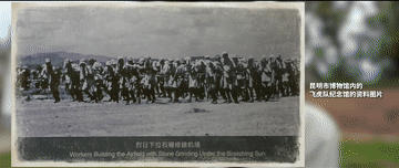1942年日軍截斷滇緬公路后,美國空軍開辟“駝峰航線”,為中國提供軍用民用物資,為此迫切需要在短時間內(nèi)修建大量的機場。為了配合飛虎隊作戰(zhàn),中國人民在沒有重型機械設備的情況下,用汗水和鮮血筑成了一條條跑道。
