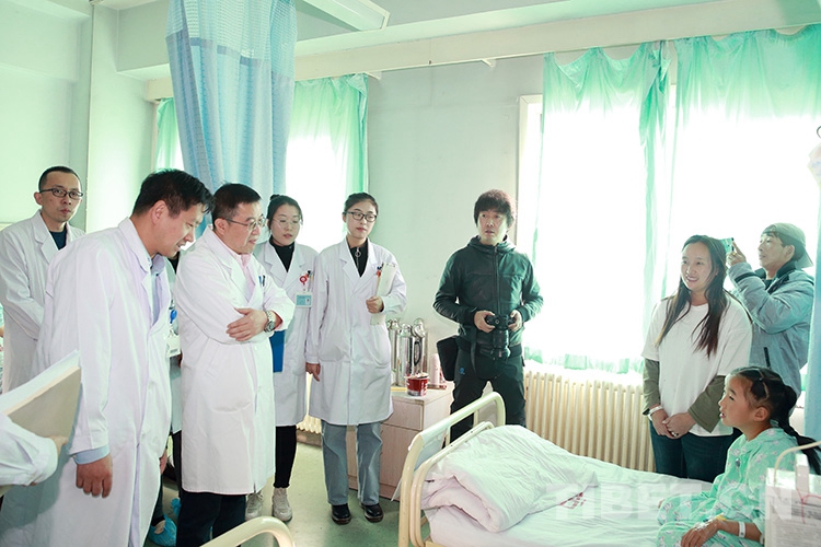 圖為手術(shù)前周軍(左三)看望次里白宗 攝影:陳衛(wèi)國