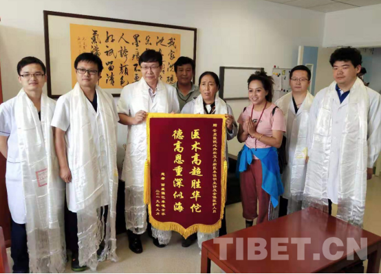 30日,即將出院的強巴卓嘎把一面書寫“醫(yī)術(shù)高超勝華佗,德高恩重深似?!钡腻\旗送到朱俊明手中,她禁不住熱淚長流,連聲說著:“吐基其,吐基其(謝謝)!”