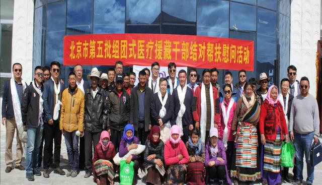 北京市第五批“組團式”援藏醫(yī)療人才開展與當?shù)厝罕娊Y(jié)對幫扶活動助力脫貧攻堅。圖為援藏醫(yī)療隊員與當?shù)亟Y(jié)對群眾合影。