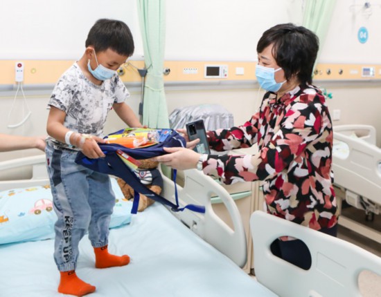 鄧?yán)蚋敝魅我恍锌赐藖?lái)渝治療的15位患兒,并為他們送上嶄新的書(shū)包和文具。并與患兒家長(zhǎng)熱情交談,詳細(xì)了解患兒恢復(fù)情況。患兒家屬代表卓瑪和旺姆分別向重慶市衛(wèi)健委和重醫(yī)附屬兒童醫(yī)院贈(zèng)送了錦旗,并獻(xiàn)上了潔白的哈達(dá)表示感謝。