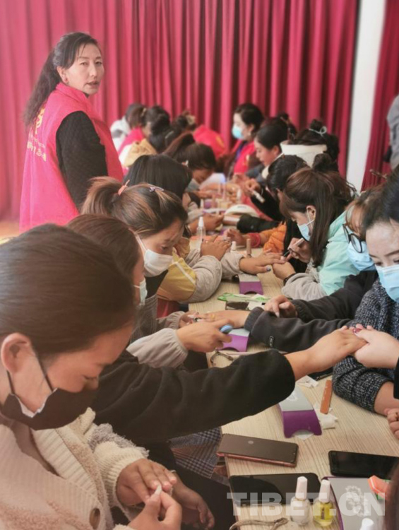圖為恩惠苑社區(qū)的部分需要就業(yè)婦女在培訓老師指導下進行美甲實操