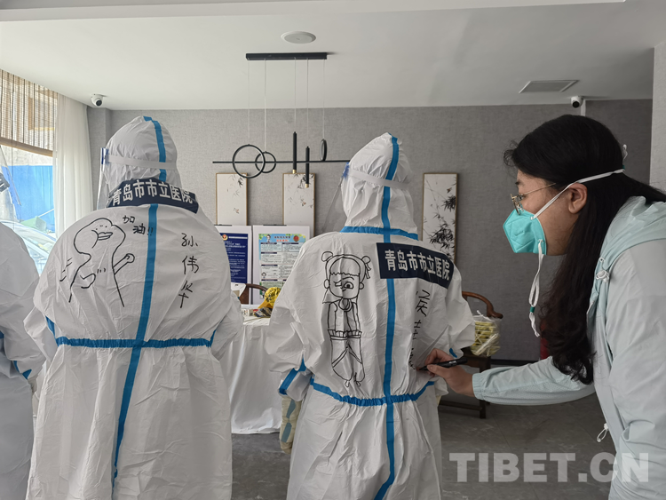 中國西藏網(wǎng)訊 青島援藏醫(yī)療隊自8月17日進藏以來, 隊員們無論工作多累多難、高原反應有多難受,都沒有一句怨言,依然堅持在西藏自治區(qū)日喀則市戰(zhàn)“疫”一線。工作之余,來自青島市市立醫(yī)院本部ICU的鐘翔宇發(fā)揮出了她的“隱藏技能”——在醫(yī)療隊的“大白”身上畫上漫畫,用表情包背到身上的方式給隊友們加油鼓勁兒。身著漫畫“戰(zhàn)袍”的隊員們斗志昂揚,朝氣蓬勃,互相鼓勵幫助,完成了一天天的工作任務。而這些古靈精怪的漫畫,在戰(zhàn)“疫”一線也成了一道靚麗的風景線。(中國西藏網(wǎng) 記者/次旦拉姆 由桑珠孜區(qū)融媒體中心供稿)