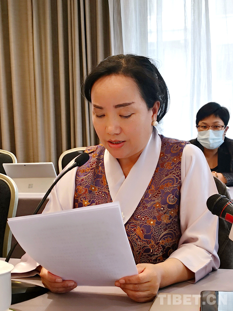 圖為全國政協(xié)委員、西藏藏醫(yī)藥大學副教授明吉措姆發(fā)言 圖片由受訪者提供