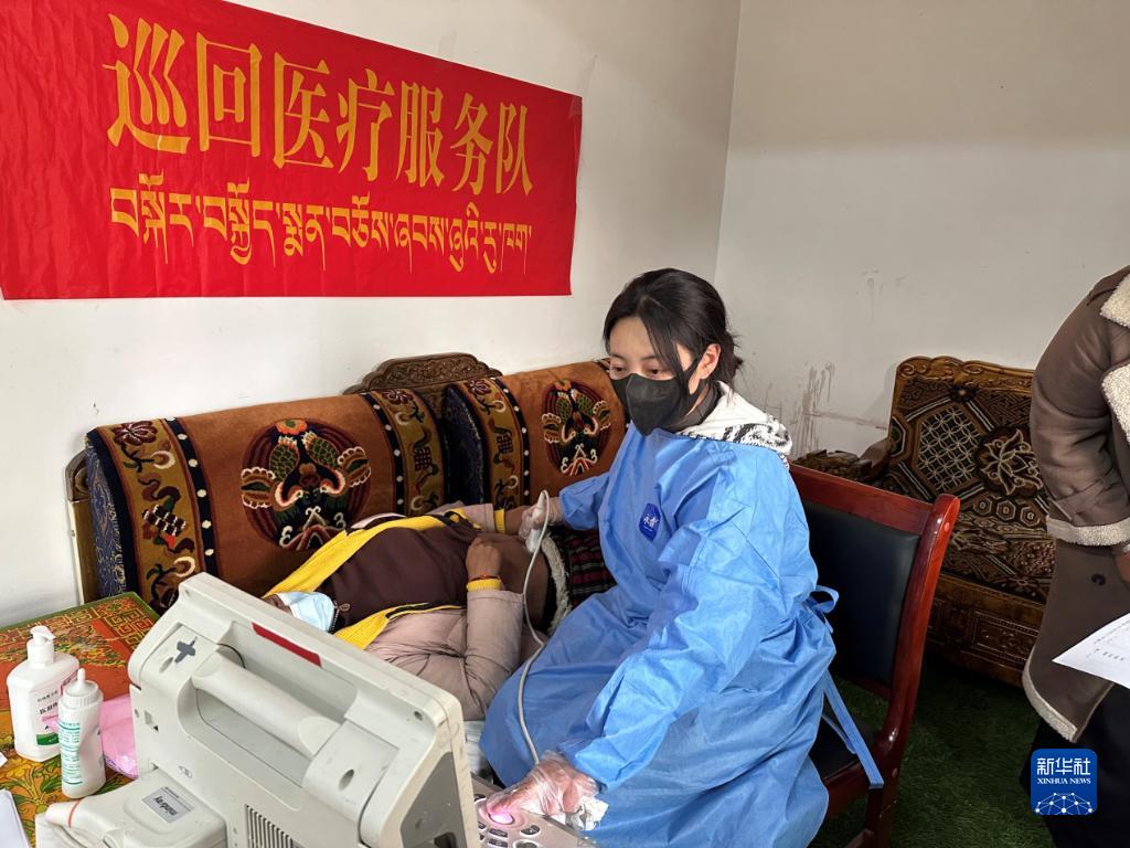 西藏那曲市比如縣羊秀鄉(xiāng)衛(wèi)生院醫(yī)生在給當?shù)乩习傩諜z查身體。(資料圖片)