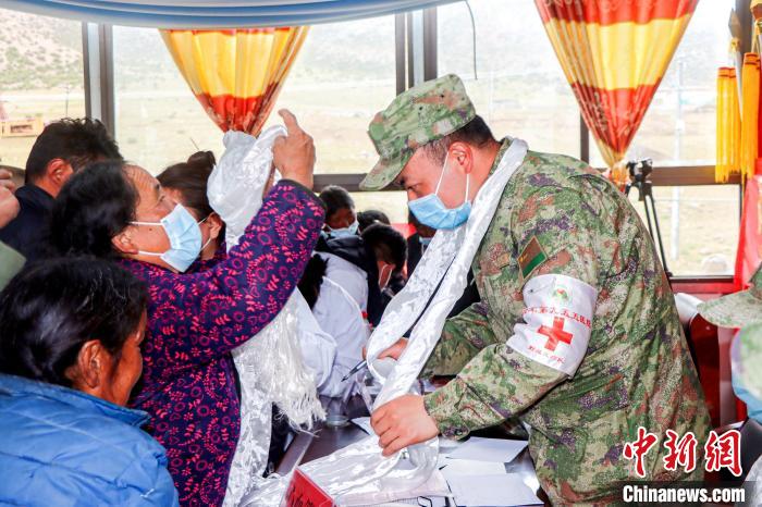 “多年的疾病,今天終于接受了一次系統(tǒng)的檢查和治療,感謝‘金珠瑪米門巴’(解放軍醫(yī)生)。”村民西繞為外科醫(yī)生王勝獻(xiàn)上潔白的哈達(dá),表達(dá)她的感恩之心,并緊握醫(yī)生的手久久不愿放開。