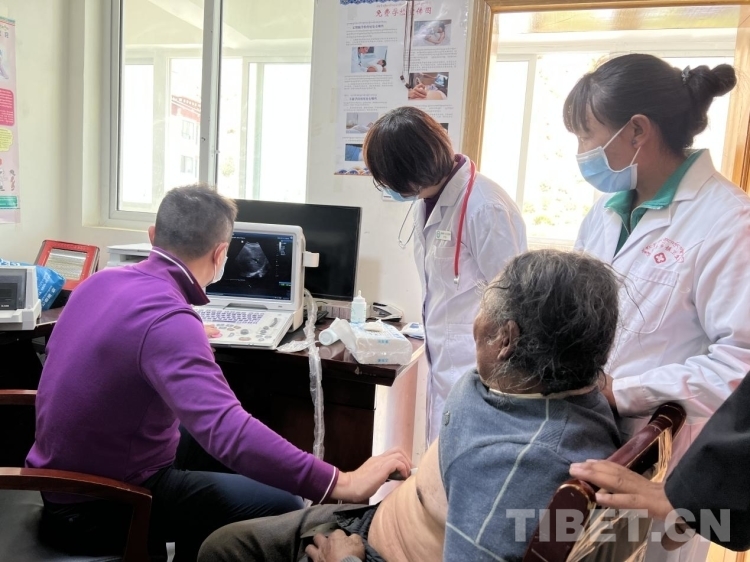 “彩超呢?”北京上地醫(yī)院院長張宇在衛(wèi)生院工作人員的帶領(lǐng)下來到衛(wèi)生院二樓為75歲的桑旦江措老人進(jìn)行胸部彩超檢查,“霍主任(中國中醫(yī)科學(xué)院望京醫(yī)院心內(nèi)科主任)懷疑他有心衰,患者不能平臥睡覺、走路氣喘、雙腿腫脹,所以我想通過超聲印證一下,昨天我們也篩查了一些有心衰跡象的群眾,平時(shí)大家覺得氣喘是小問題,忍忍就好了,實(shí)際上它還是很嚴(yán)重的,要及時(shí)治療。”張醫(yī)生告訴記者,“藏族群眾對骨科和胃腸道的關(guān)注度更高,但是心臟、血管、糖尿病等不會立馬表現(xiàn)出來的慢性病不太重視,這樣往往會錯過最佳的治療時(shí)間。所以我們應(yīng)該通過講座和培訓(xùn),一方面要增強(qiáng)群眾的健康意識,另一方面也要培養(yǎng)當(dāng)?shù)赜玫蒙?、留得住的技術(shù)型人才?!?/p>