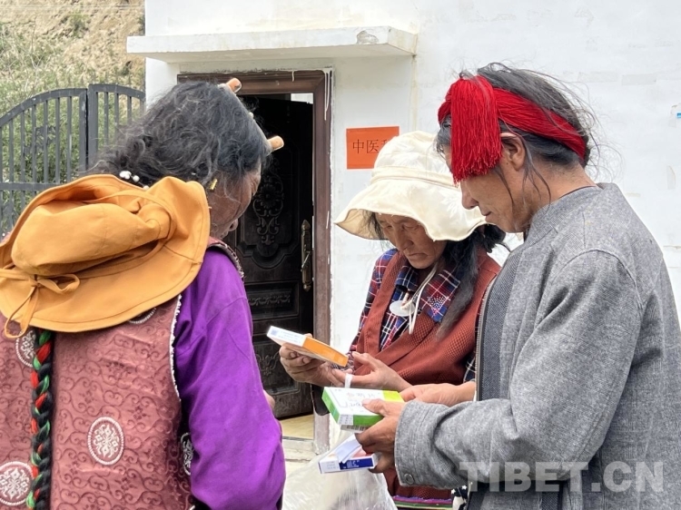 圖為群眾們拿到相關(guān)藥物 攝影:德吉卓瑪