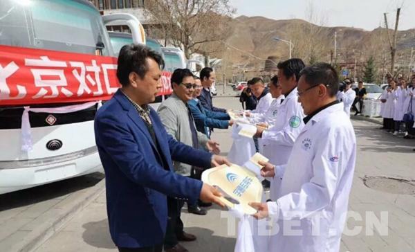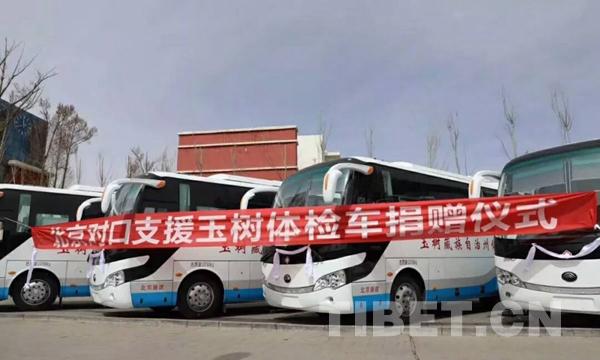 圖為北京對(duì)口支援玉樹體檢車捐贈(zèng)儀式現(xiàn)場(chǎng)