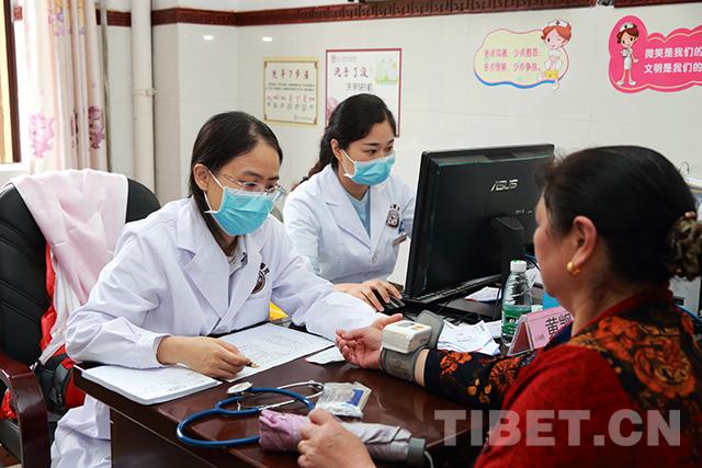 圖為醫(yī)務(wù)志愿者在汶川縣中醫(yī)醫(yī)院義診點(diǎn)為患者做檢查。